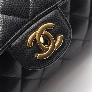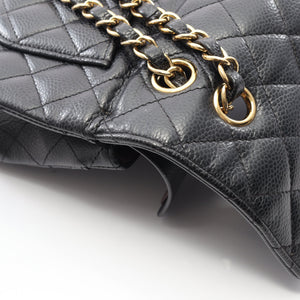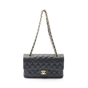 Matelasse W flap W chain shoulder bag Caviar skin Black Gold hardware