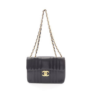 Mademoiselle Decamatlassé W chain shoulder bag Lambskin Black Gold hardware