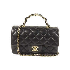 V-stitch Chevron Backpack Rucksack Lambskin Black Silver hardware