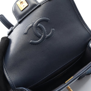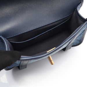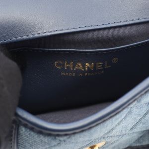 Mini matelasse Chain shoulder bag Denim Leather Blue Navy Gold hardware 2WAY