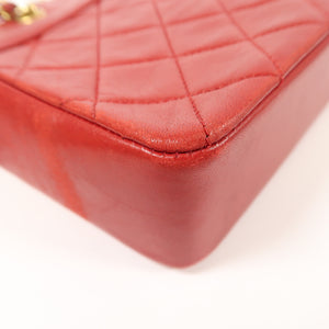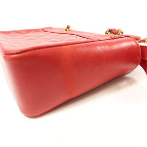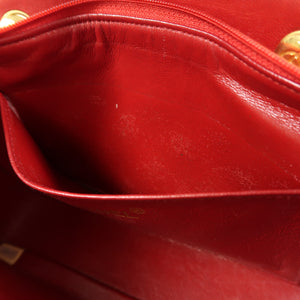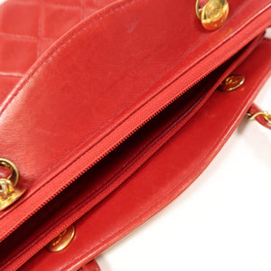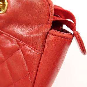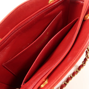 CHANEL CC GHW Vintage Chain Shoulder Bag Leather Red