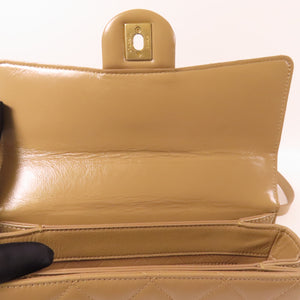 CHANEL CC GHW Chain Shoulder Bag Calfskin Leather Beige
