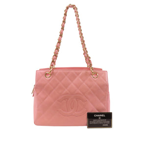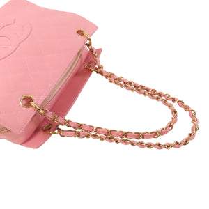 CHANEL CC GHW Petite Timeless Tote Bag Chain Shoulder Calfskin Leather Pink