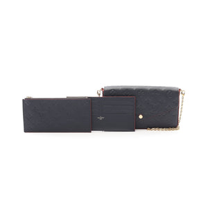 Pochette Felicie Monogram Amplant Marine Rouge Chain wallet Leather Navy Red