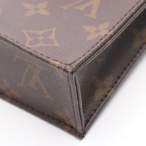 Petite Sac Plat Monogram Handbag PVC Leather Brown 2WAY