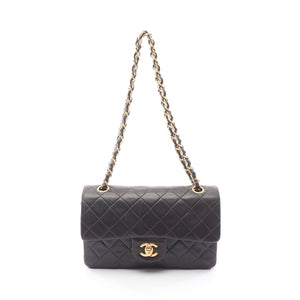 Matelasse W flap W chain shoulder bag Lambskin Black Gold hardware