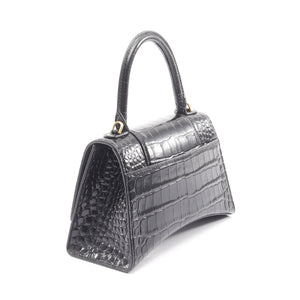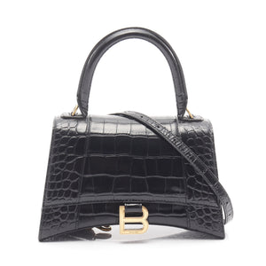 Hour glass Small Handbag Leather Black 2WAY