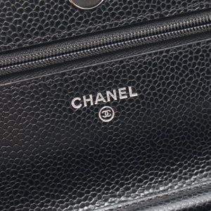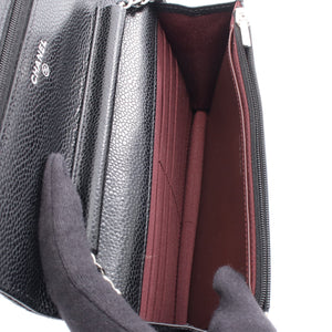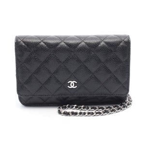 Matelasse Chain wallet Caviar skin Black Silver hardware