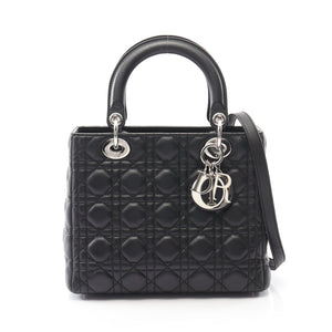 LADY DIOR Lady dior Canage Handbag Leather Black 2WAY