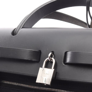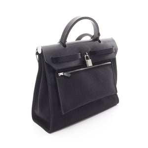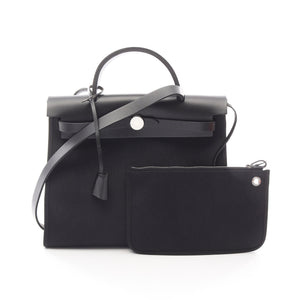 HerBag Zip PM Handbag Toile military Vache hunter Black Silver hardware C engraved