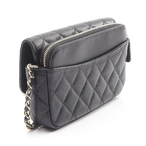 Matelasse Chain phone case wallet Chain shoulder bag Shoulder wallet Caviar skin Black Gold hardware