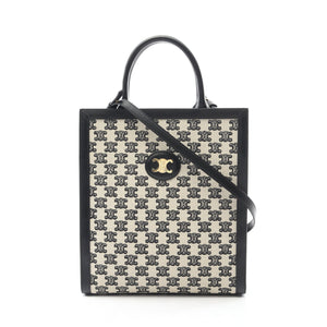Small Vertical Hippopotamus Triomphe Handbag Tote bag Canvas Leather Off white Black 2WAY