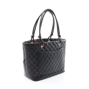 Cambon line Large Shoulder bag Tote bag Leather Black White Silver hardware