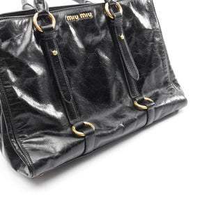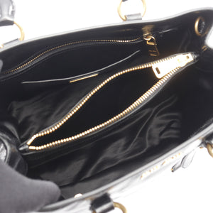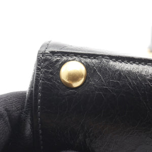 Handbag Logo plate Leather Black 2WAY