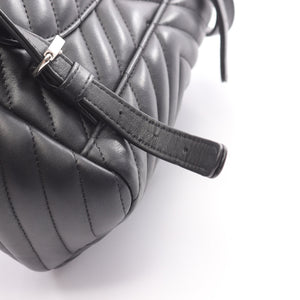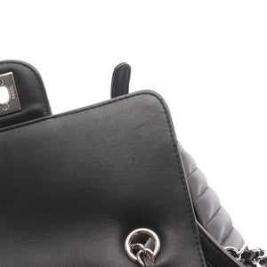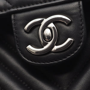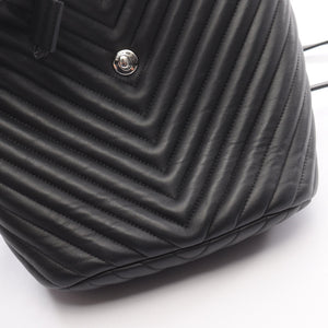 V-stitch Chevron Backpack Rucksack Lambskin Black Silver hardware