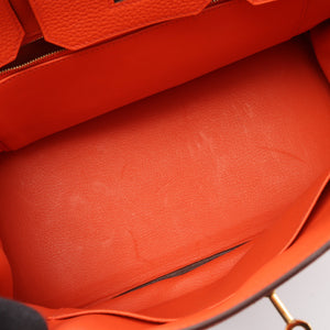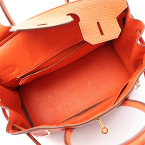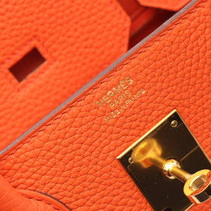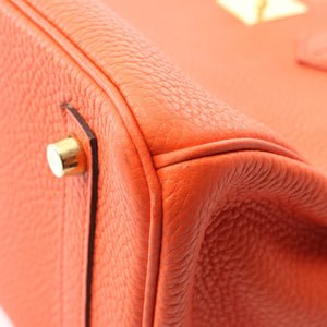 Birkin 30 Feu Handbag Togo Orange Gold hardware T stamp