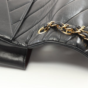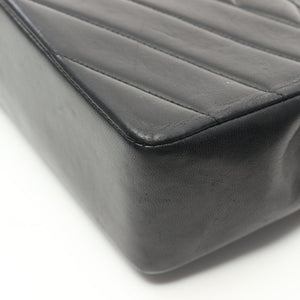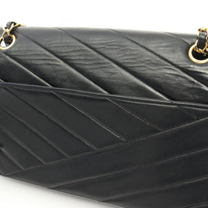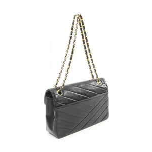 CHANEL CC GHW Bias Stitch Chain Shoulder Bag Lambskin Leather Black