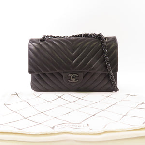 CHANEL CC Classic 25 Chain Shoulder Bag Lambskin Leather Black