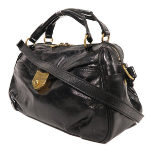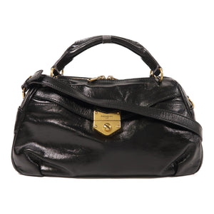 YVES SAINT LAURENT YSL GHW 2 Way Shoulder Bag Calfskin Leather Black