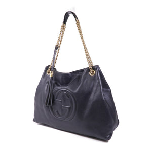 GUCCI GG GHW Soho Large Chain Shoulder Tote Bag 310306 Leather Black
