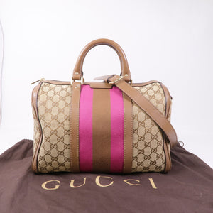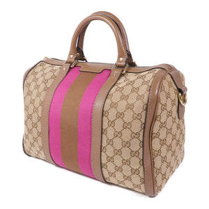 GUCCI GHW 2 Way Shoulder Boston Bag 247205 F4CKG GG Canvas Brown Purple
