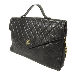 CHANEL CC GHW Brief Case 2Way Shoulder Bag Lambskin Leather Black