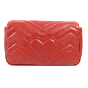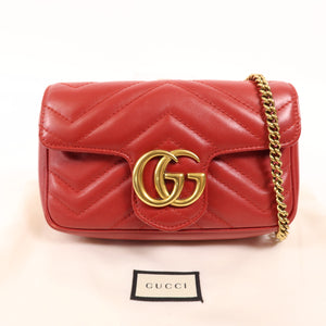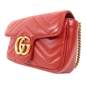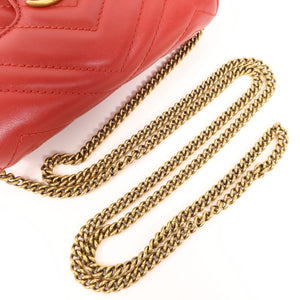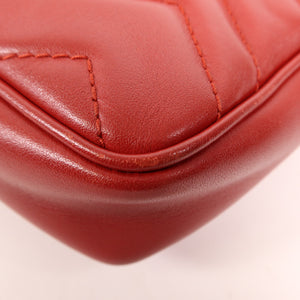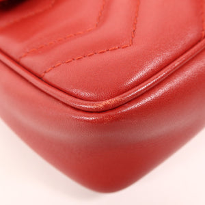 GUCCI GG GHW GG Marmont Super Mini Chain Shoulder Bag 476433 Lambskin Red