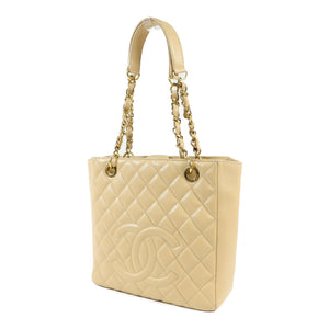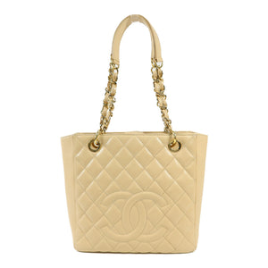 CHANEL CC GHW PST Petite Shopping Tote Bag A50994 Calfskin Leather Beige