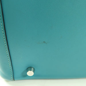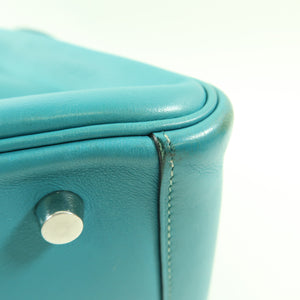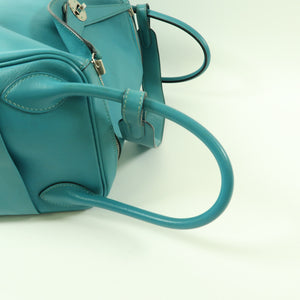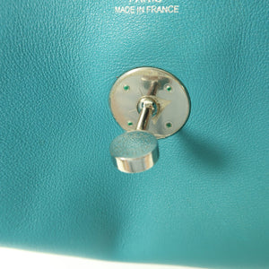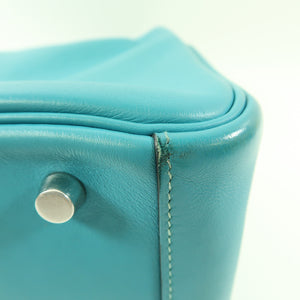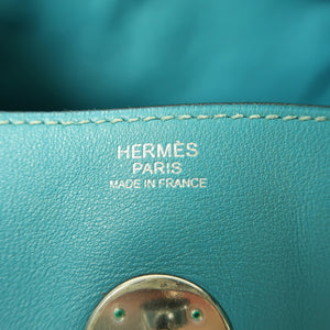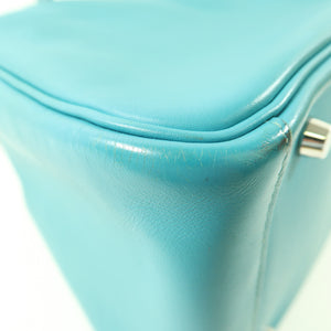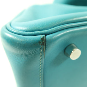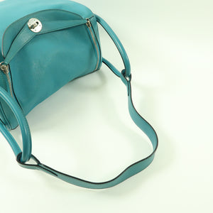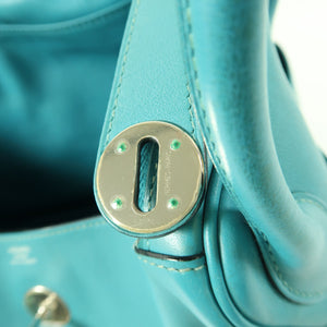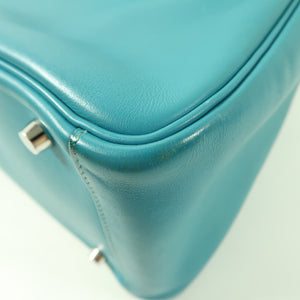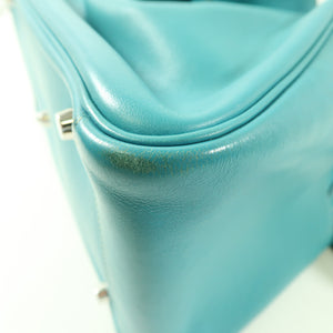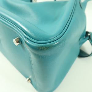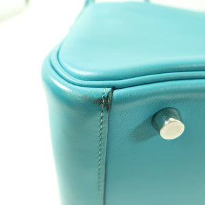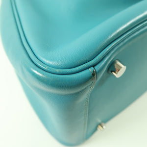 HERMES PHW Lindy 30 2 Way Shoulder Handbag Swift Leather Bleu Paon Green