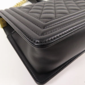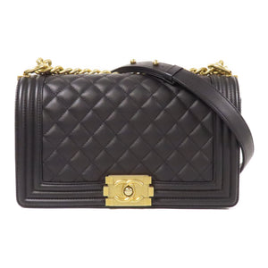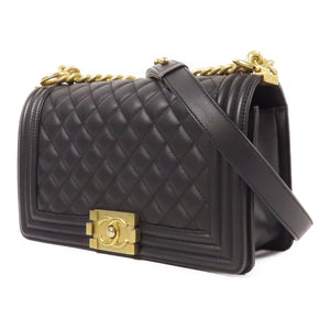 CHANEL CC GHW Boy 25 Chain Shoulder Bag Calfskin Leather Black