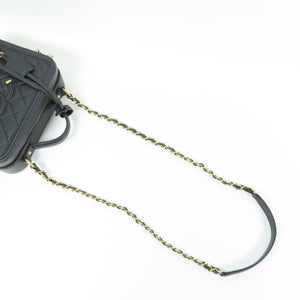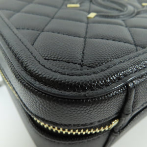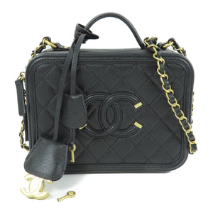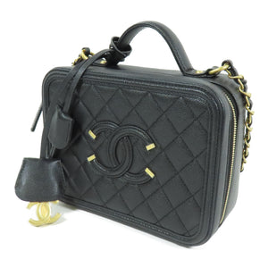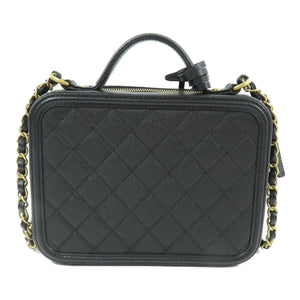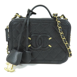 CHANEL CC GHW Vanity Case 2Way Chain Shoulder Hand Bag Calfskin Leather Black