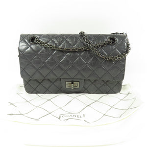 CHANEL CC 2.55 Chain Shoulder Bag Calfskin Leather Black