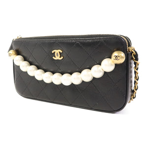 CHANEL CC GHW WOC Wallet On Chain Shoulder Bag Calfskin Leather Black