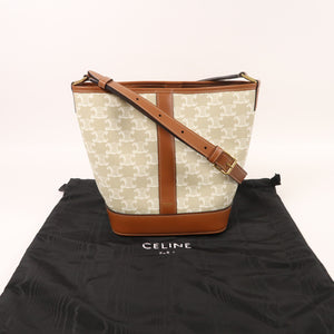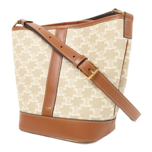 CELINE GHW Triomphe Bucket Shoulder Bag Coated Canvas Khaki Brown