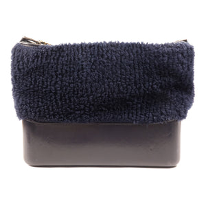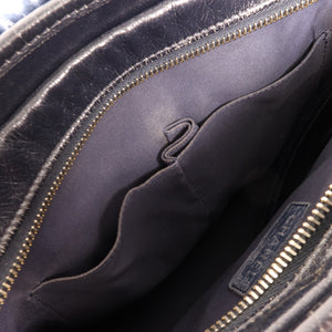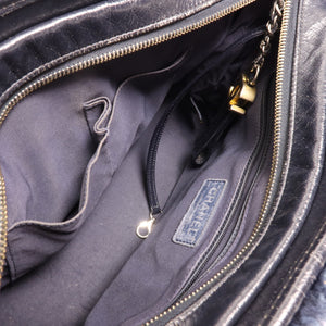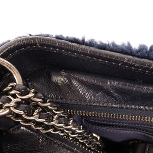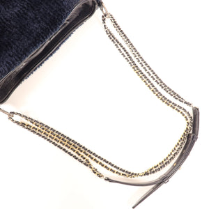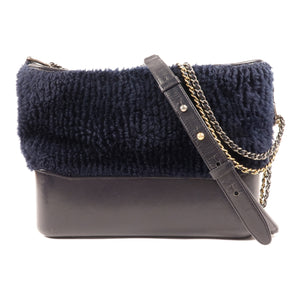 CHANEL CC Gabrielle Medium Chain Shoulder Bag Calfskin Leather/Wool Navy