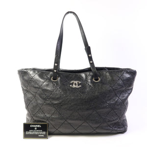 CHANEL CC SHW Tote Bag Shoulder Bag Calfskin Leather Black