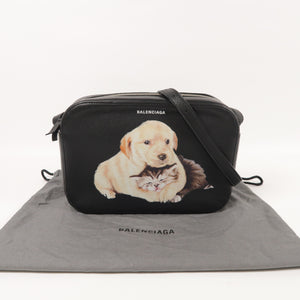 BALENCIAGA SHW Everyday Camera Shoulder Bag Calfskin Leather Black