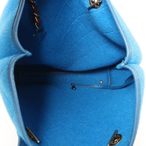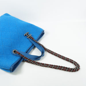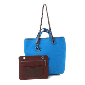 CHANEL CC 2way Chain Shoulder Bag Wool Blue