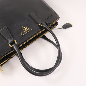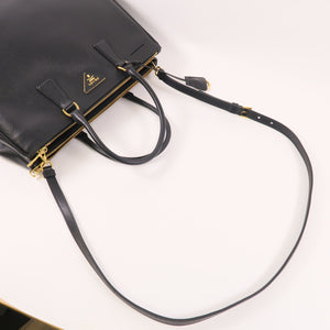 PRADA GHW Galleria 2 Way Shoulder Hand Bag BN1801 Saffiano Leather Black