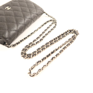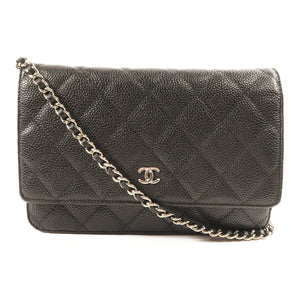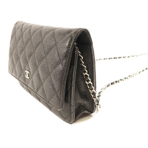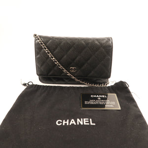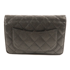CHANEL CC SHW WOC Wallet On Chain Chain Shoulder Bag Calfskin Leather Black