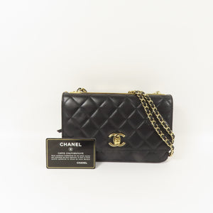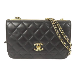CHANEL CC GHW Trandy CC WOC Wallet On Chain Shoulder Bag Lambskin Leather Black