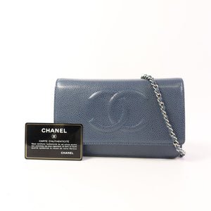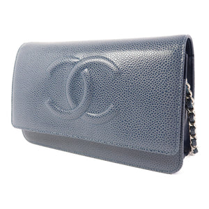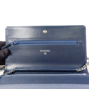 CHANEL CC SHW WOC Wallet On Chain Calfskin Leather Blue