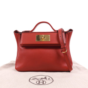 HERMES GHW 24/24 Mini 2 Way Shoulder Bag Handbag Evercolor Leather Rouge Piment