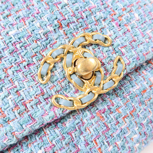 CHANEL CC GHW Chain Shoulder Bag Tweed Light Blue