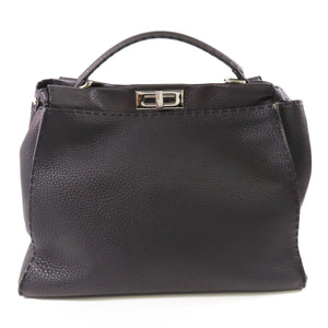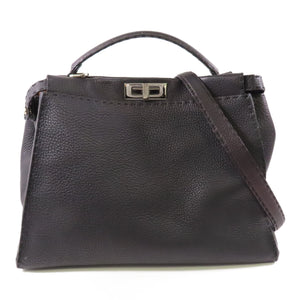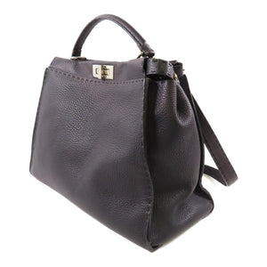 FENDI SHW Peekaboo 2 Way Shoulder Bag Handbag Calfskin Leather Black