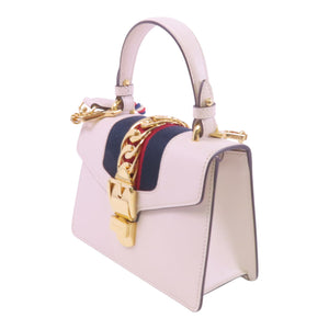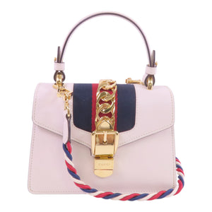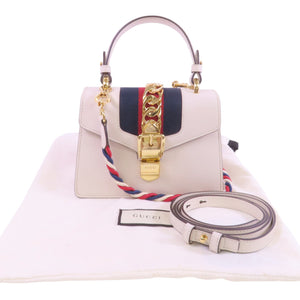 GUCCI GG GHW Sylvie Mini Handbag Shoulder Bag 470270 Calfskin Leather White