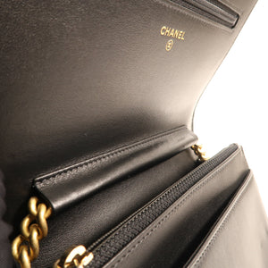 CHANELCC GHW Wallet On Chain Shoulder Bag Calfskin Leather Black/ Gold