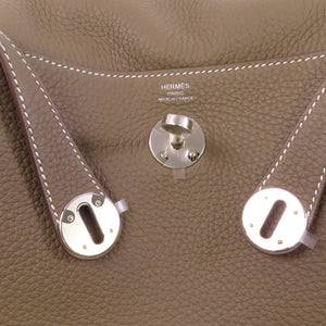 HERMES PHW Lindy 26 Shoulder Bag Clemence Leather Etoupe Grey