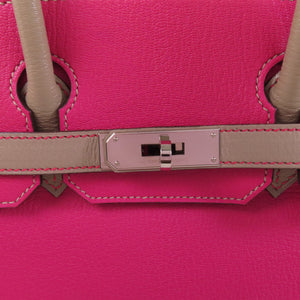 HERMES PHW Birkin 30 Handbag Chevre Leather Pink Grey