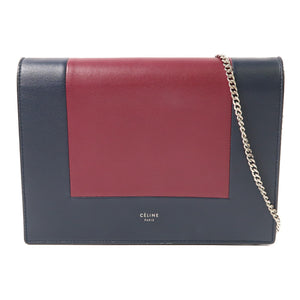 CELINE SHW Frame Wallet On Strap Chain Shoulder Bag Lambskin Leather Red/Navy